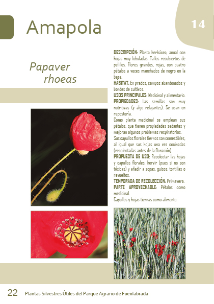 DESCRIPCIÓN: Planta herbácea, anual con hojas muy lobuladas. Tallos recubiertos de pelillos. Flores grandes, rojas, con cuatro pétalos a veces manchados de negro en la base.