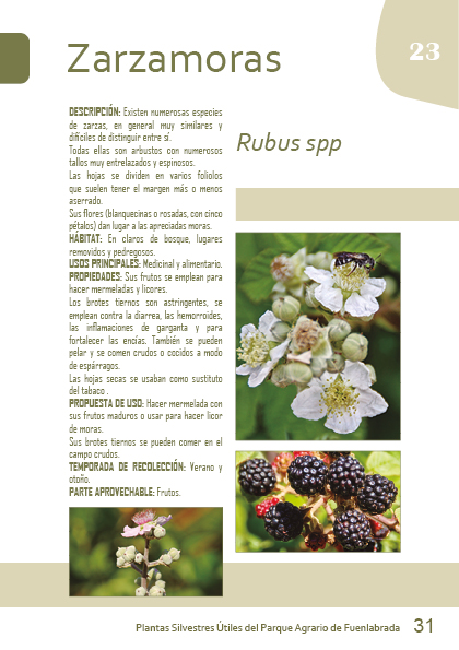 Sus flores (blanquecinas o rosadas, con cinco pétalos) dan lugar a las apreciadas moras.